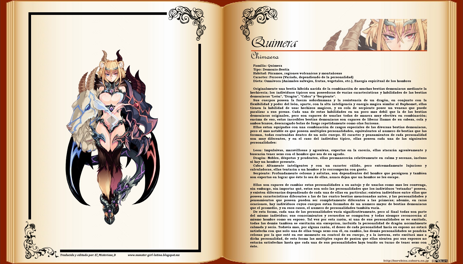 Leyendo un poco la descripción de la quimera veo que se asemeja mucho a la de otra ficha que en algun momento se coló entre las oficiales, y digo que se coló porque resultó que era una fanmade y como no se me dió por revisar bien, la tomé como propia de la enciclopedia, esta ficha se trataba del homúnculo.