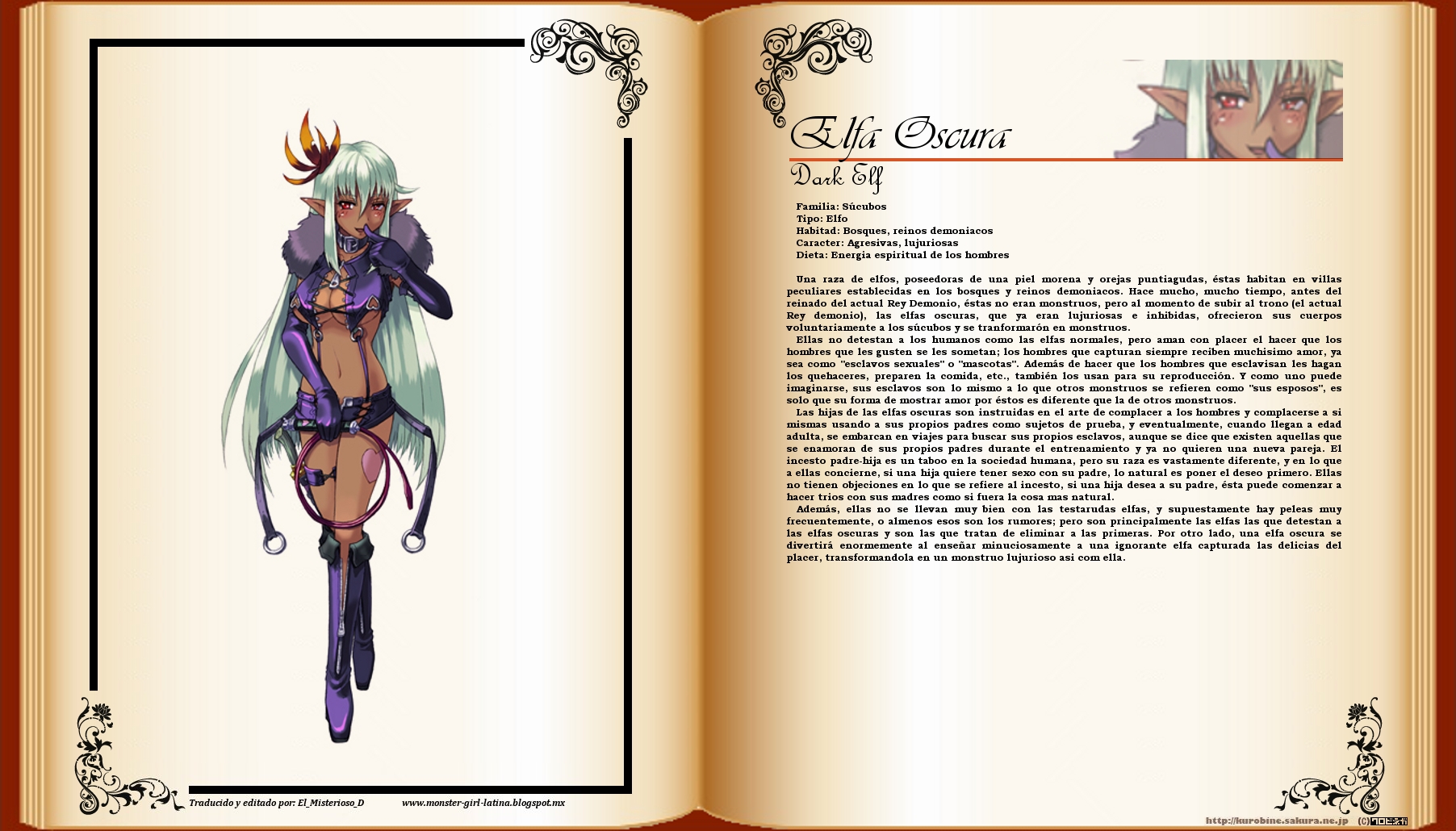 Esta también es otra ficha que menciona la interacción de las jóvenes elfas con sus padres, aunque no de una manera muy agradable (si no les gusta el incesto :V), en fin que el papá es "juguete de practica" para la joven elfa oscura e incluso se mencionan los casos donde la niña al final se enamora del papá (eso se llama complejo de Elektra, el opuesto al complejo de Edipo) y se queda a hacer trios con la madre en la casa, pseee, raza bastante abierta supongo ;:T (y una ficha que me pone en peligro por la censura de blogger pero shhhhh).