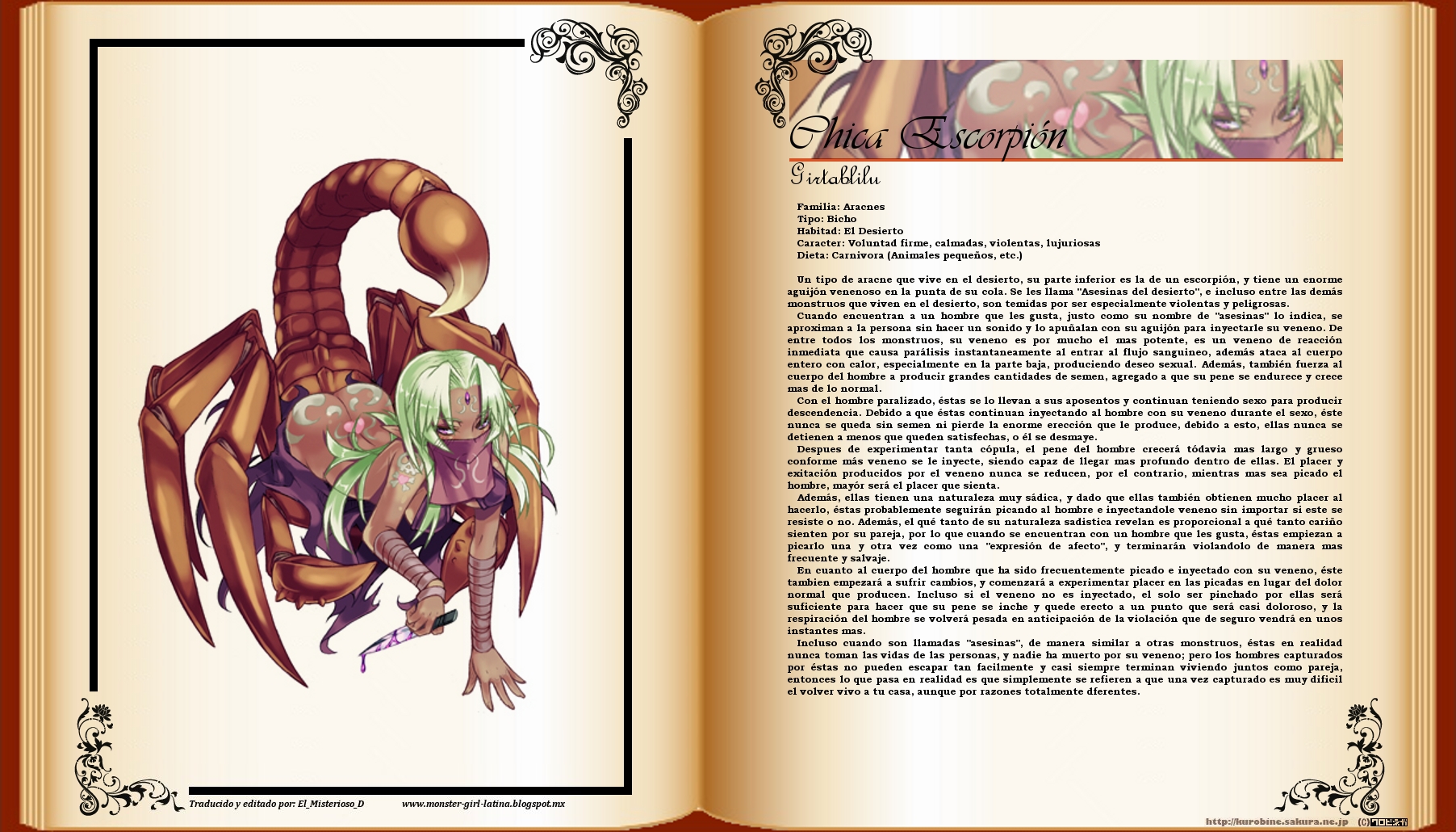 Y bueno shavos, aprovechando la tarde libre que tengo mejor me pongo al dia con la enciclopedia, no queremos que nos pase lo de la semana pasada :V, asi que les traigo otra ficha de la enciclopedia, esta vez una habitante del desierto un tanto creepy para algunos supongo, y es que una cosa son las arañas y otra los escorpiones (como abejas y avispas :V), en fin, que mejor pasamos a la parte cachonda :P, pero antes algunos datos de trivia.