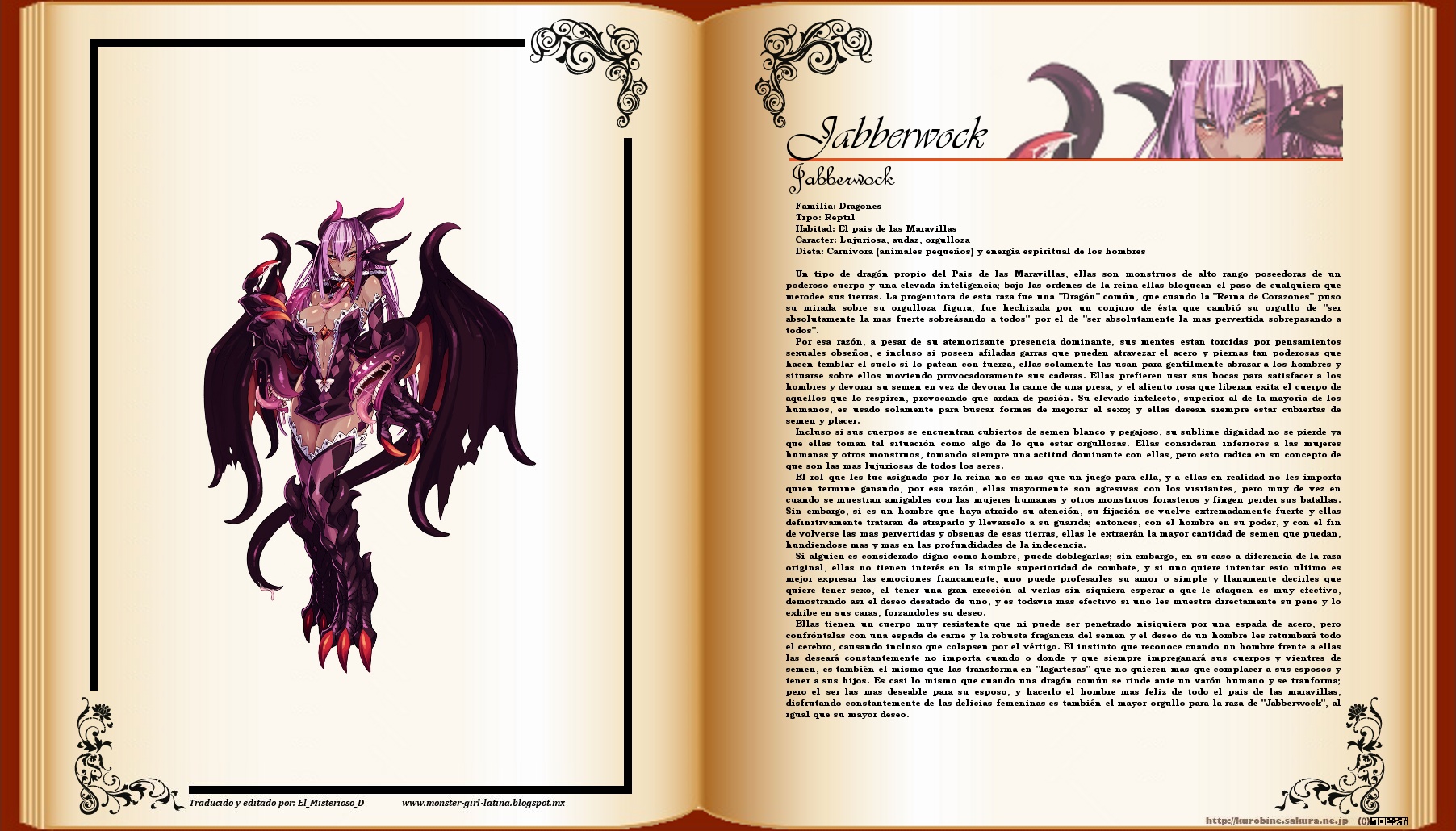 Y bueno shavos, otra semana mas en cuarentena y otra ficha de chica monstruo para ayudarnos en esas noches frias y solitarias :V. Ésta ves ya nos quitamos de la letra "I" y pasamos a la "J", y comenzamos esta nueva letra con una chica monstruo algo peculiar, moradora del Pais de las Maravillas y al parecer favorita de muchos, la Jabberwock (creo que se lee "jaberwoki"...ayuwoki ...ayuwoki :V)